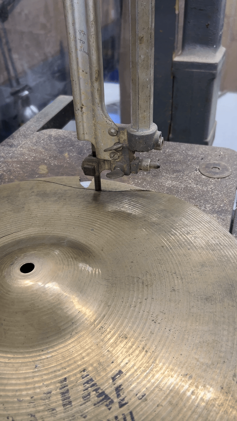 Cut out the cracks of a broken cymbal.