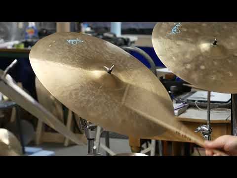 The Oyster is a cymbal concept characterized by an uneven shape and profile. Most of the cymbal has a traditionally shaped profile, while about a quarter of the cymbal is nearly flat. The traditional section gives the cymbal a strong and sweet stick sound, while the flat portion adds a sympathetically resonating lower pitched wash. This cymbal comes standard with two brass rivets. Note: the flat, softer section of the cymbal will always hang opposite to the player.